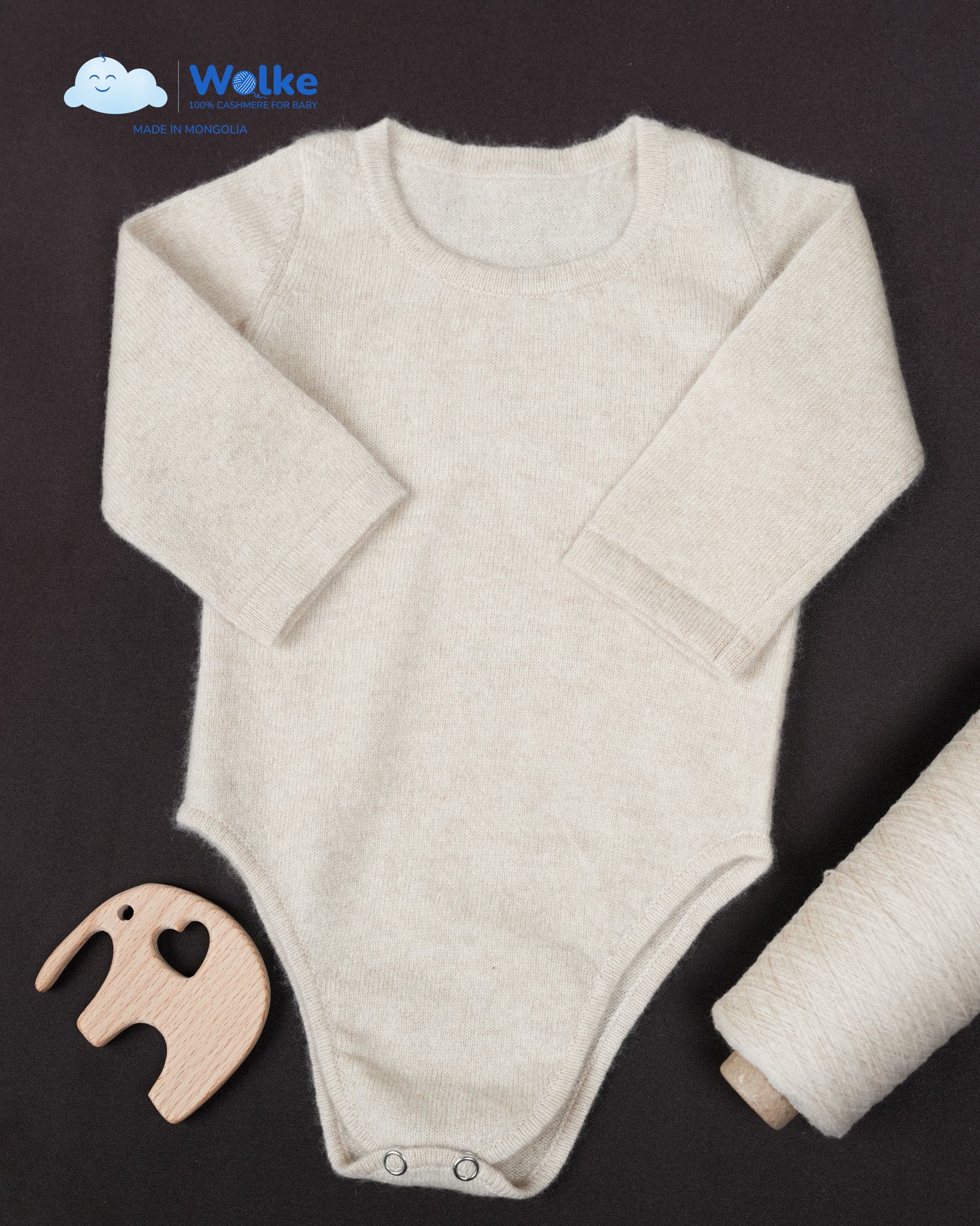 Dieser praktische Baby-Body mit langen Ärmeln aus 100 % reinem mongolischem Kaschmir ist die perfekte erste Schicht für kühlere Tage. Weich auf der Haut, atmungsaktiv und hautfreundlich – ideal für Herbst, Winter und als Unterwäsche.